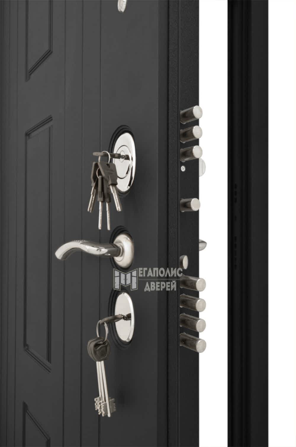 Торец полотна дополнительно оснащён Pin-Up при закрывании противосъёмными штырями, благодаря чему модель «Т3М» невозможно будет не только взломать, но и снять с петель.