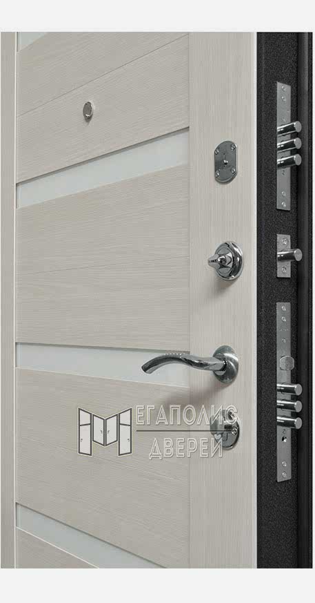 Фрезерованные МДФ панели скрывают под собой слой минеральной ваты и два листа высокопрочной стали. А два замка самого высокого класса взломостойкости Pin-Up надёжную защиту от непрошенных гостей на протяжении всего срока службы двери.